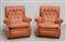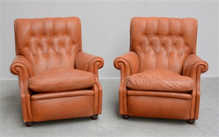 Coppia di poltrone imbottite rivestite in pelle color tabacco chiaro. Italia,...