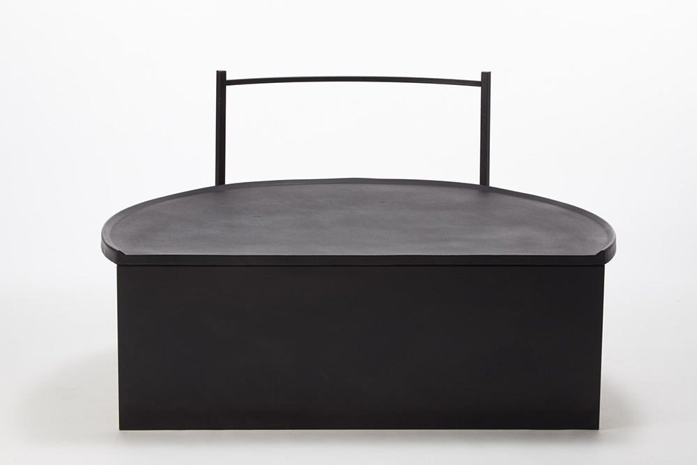 Tavolo basso con struttura in profilato metallico laccato nero e piano...