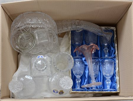 Lotto composto da nove oggetti diversi e sei calici in vetro e cristallo...