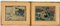 Due litografie a colori raffiguranti scene di teatro, con montatura e cornice Giappone, periodo Meiji (36x24 cm.)(difetti)