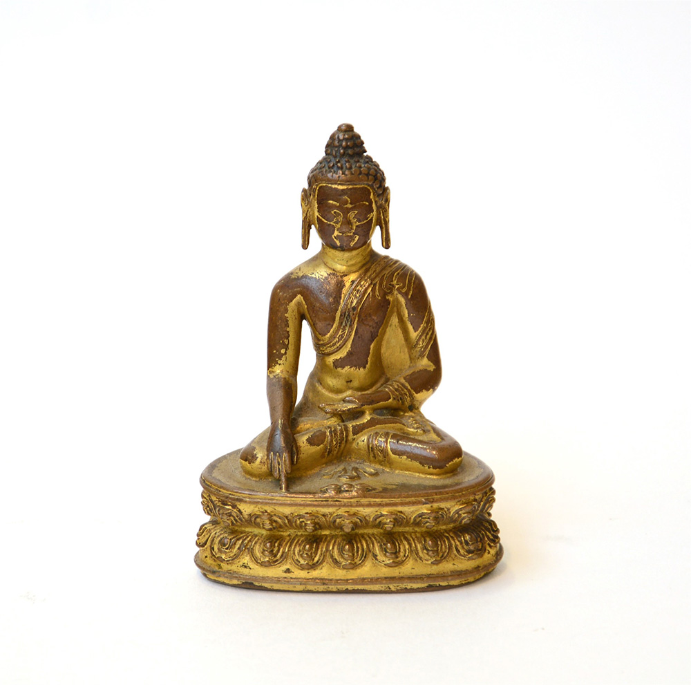 Piccolo Buddha in bronzo dorato (lievi difetti)