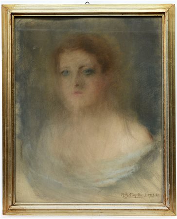 Mario Bettinelli (Treviglio 1880 - Milano 1953) "Ritratto di fanciulla" 1933 (XI) pastello su cartoncino (cm 65x50) firmato e datato in basso a destra, in cornice (difetti)