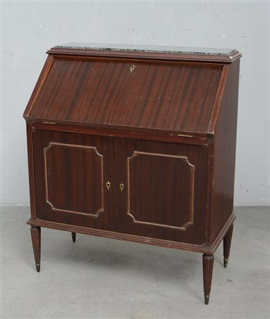 Mobile a ribalta in mogano a tre ante di cui una ribaltabile piano in marmo...