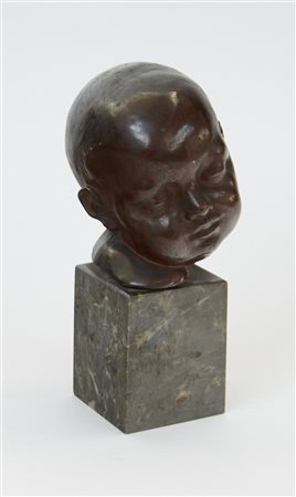 Ignoto "Testa di bimbo" scultura in bronzo (h cm 15) Poggiante su base in marmo