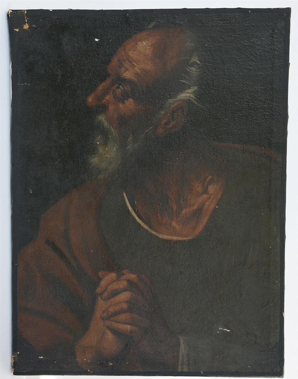 Ignoto della fine del secolo XVII "Ritratto di uomo in preghiera" olio su tela (cm 63x47) (difetti e restauri)