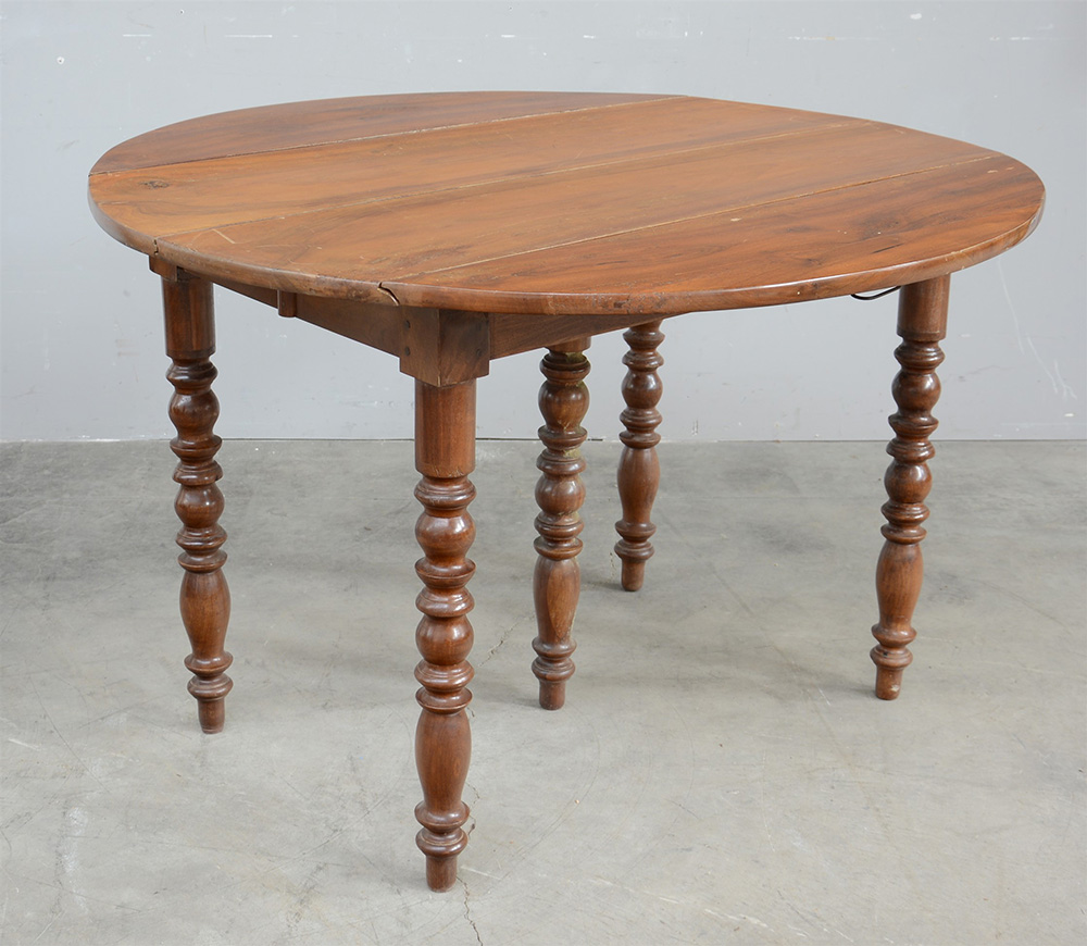 Tavolo ad alette allungabile in noce, gambe tornite a rocchetto, sec. XIX (cm...
