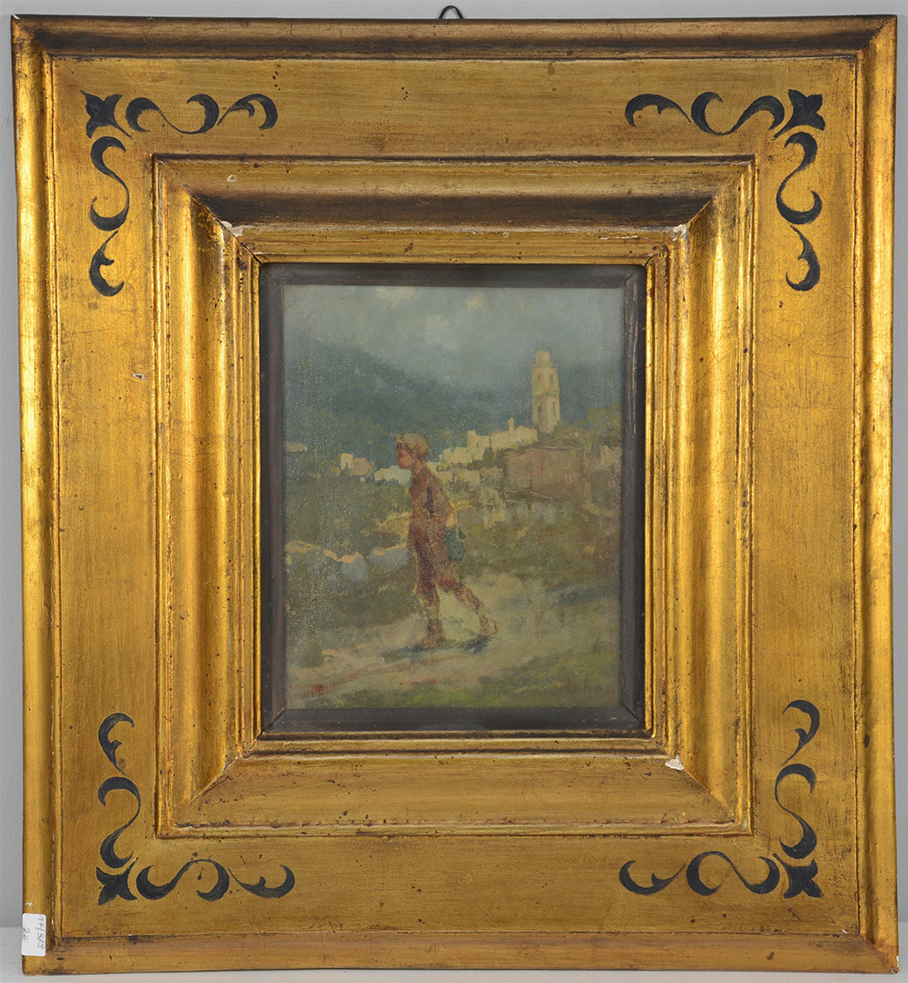 L. Rossi "La passeggiata" olio su tela (cm 25.5x22) Firmato in basso a destra In cornice