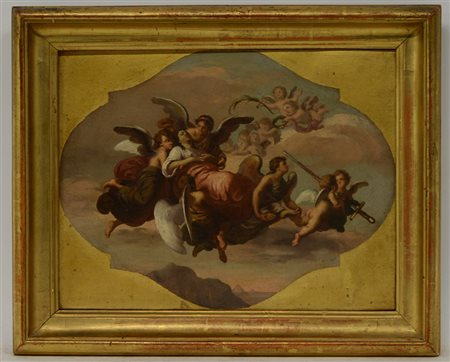 Francesco Bergametti (Bergamo 1815 - 1883) "Assunzione" olio su tela (cm 22x28) Al retro: iscritto. In cornice coeva (difetti)