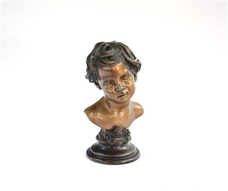 Da Gemito "Mezzobusto di fanciullo" scultura in bronzo (h. cm 32) timbro della fonderia sul fronte