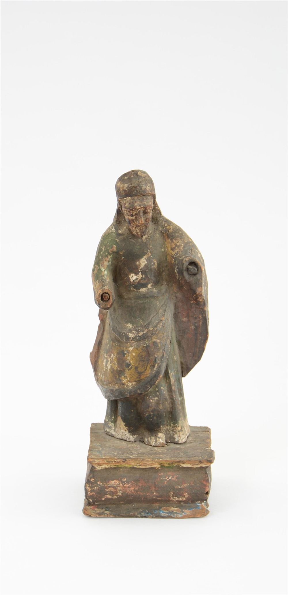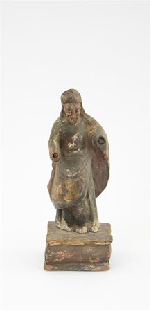 Arte etnica. Antica scultura in legno intagliato con tracce di lacca (h cm 29)(difetti e mancanze)