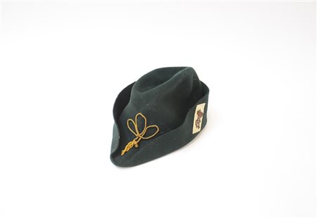 Cappello universitario in feltro nero con ricamo di Corona Sabauda, Italia,...