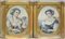 Coppia di litografie a colori raffiguranti fanciulle con fiori (cm 47x38) In cornici coeve in legno e pastiglia dorata