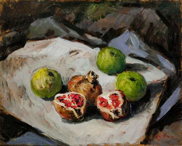 Giorgio Moldiani Melograni e mele – 1974 olio su tavola cm. 40x50 Firma in basso a dx
