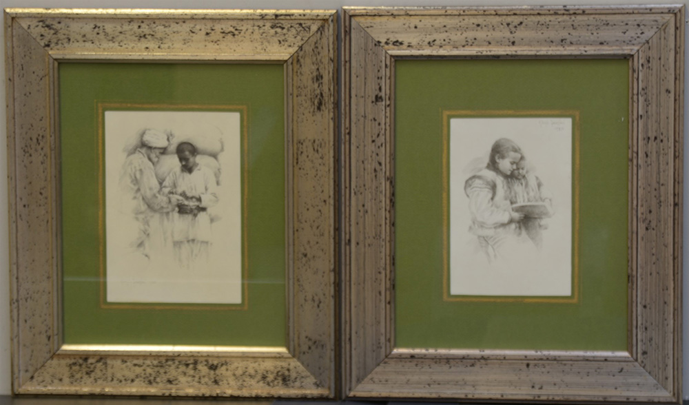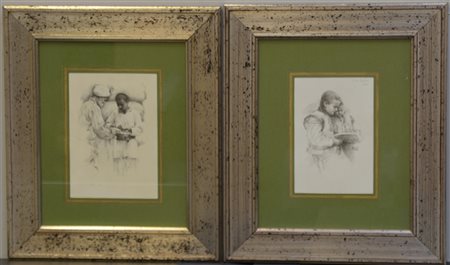 Giorgio Fanzini "Figure orientali e "Cherichetti" Due acqueforti (cm 20x13) firmate e datate 1980, in corcnice