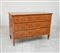 Antico comò in noce a tre cassetti lastronato e filettato decorato con...
