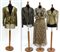 KRIZIA Lotto composto da un completo, una minigonna e tre camicie di cui alcune in pizzo nei toni dell'oro e della terra (difetti e rotture) -EN KRIZIA Lot comprising a suit, a miniskirt and three shirts of which some in lace in shades of gold and sand