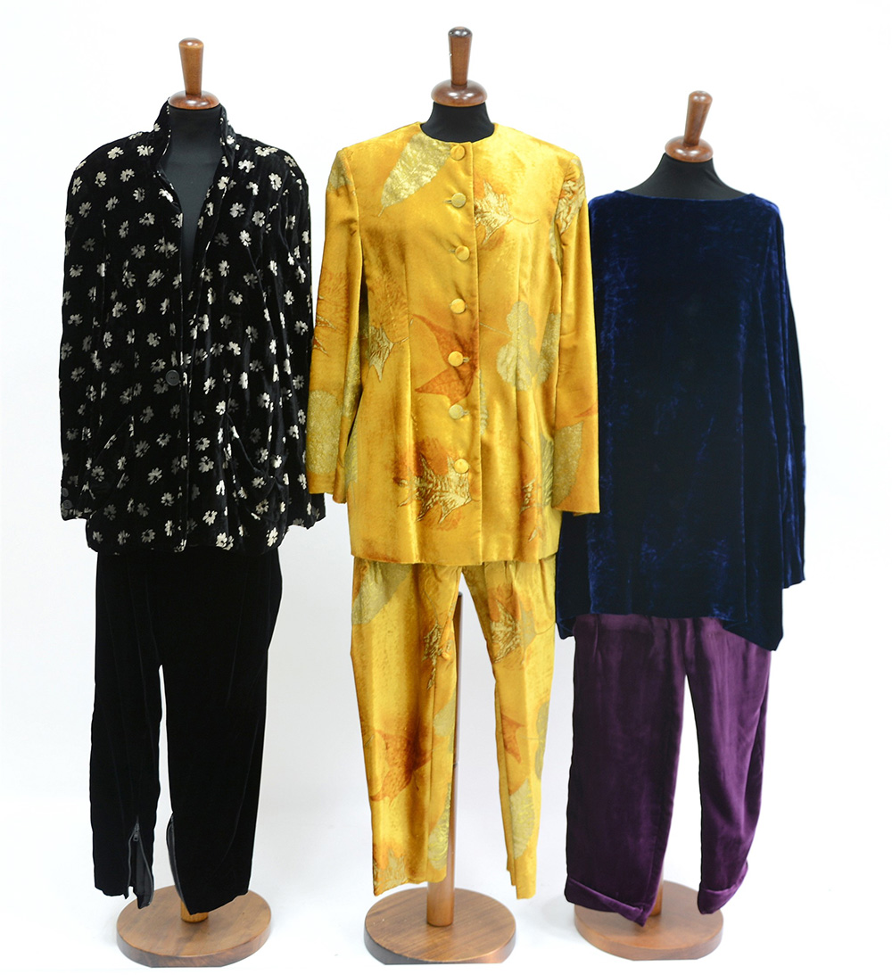 KRIZIA Lotto di tre completi giacca e pantalone in tessuto di velluto di colori, fogge e misure differenti. -EN KRIZIA Lot comprising three velvet pant-suitsin different colours, styles and sizes