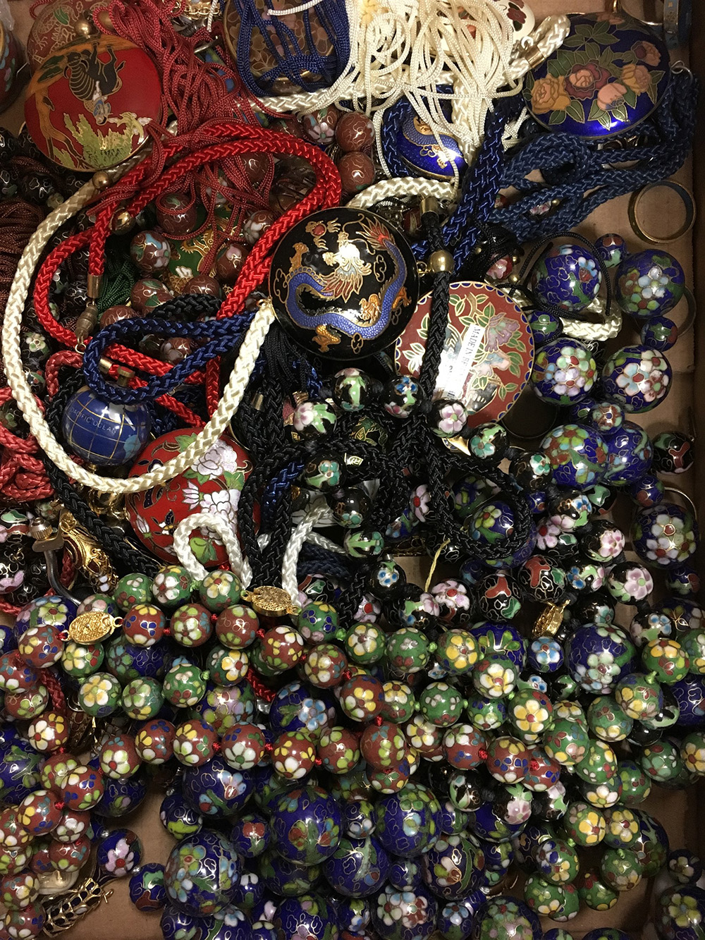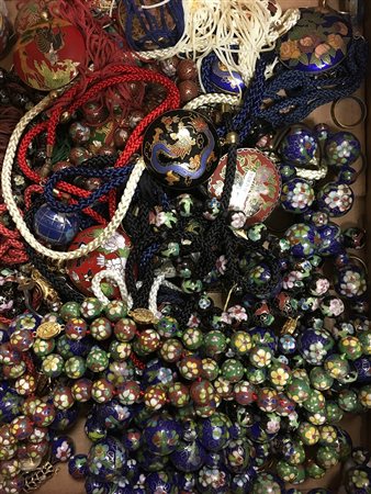 Lotto in scatolone di bigiotteria in stile orientale smaltata (difetti)