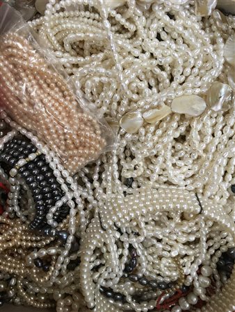 Lotto in scatolone di bigiotteria di perle coltivate e fancy o madreperla, la...