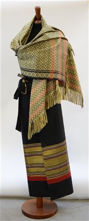 Lotto composto da gonna portafoglio in cotone nero e sciarpa indiani entrambe...