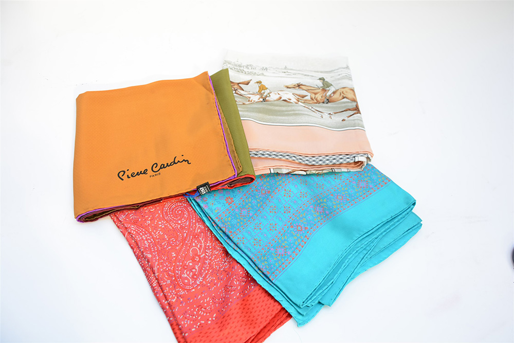 Lotto composto da numerose sciarpe e granfoulards con disegni cashmere e tinta unita (lievi difetti)