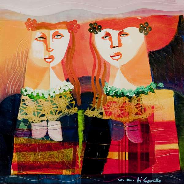 Lotto 21 | Vittorio Maria Di Carlo Le amiche - 2012 olio e collage su tela cm. 40x40...