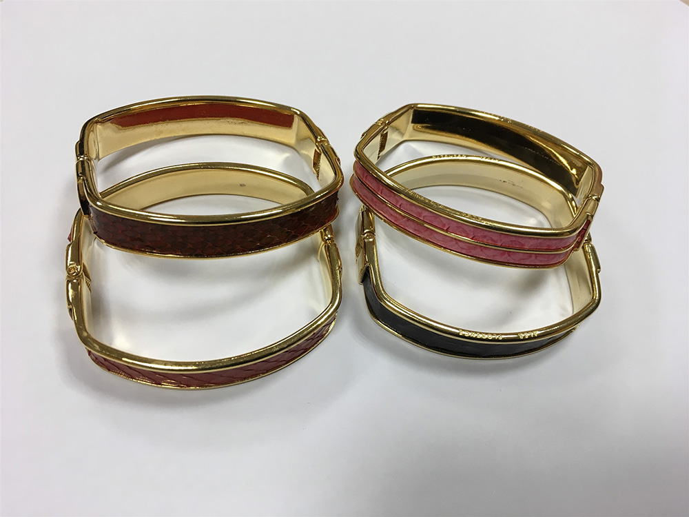 I SANTI Lotto di numerosi bracciali rigidi, molti nuovi ancora imbustati in metallo color oro e neri, in pelle colorata stampa coccodrillo