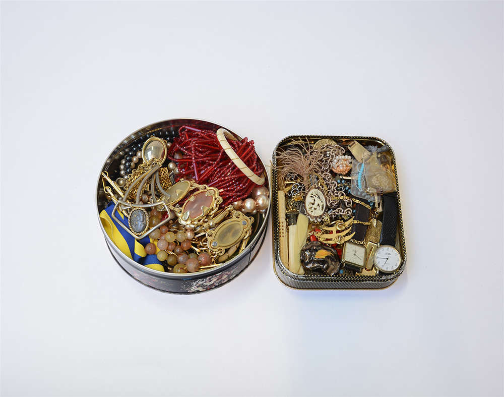 Lotto in due scatole composto da bigiotteria varia, due pezzi firmati Mila Shon (difetti)