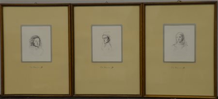 Pietro Annigoni (Milano 1910 - Firenze 1988) Gruppo di tre acqueforti con firma incide nel passepartout