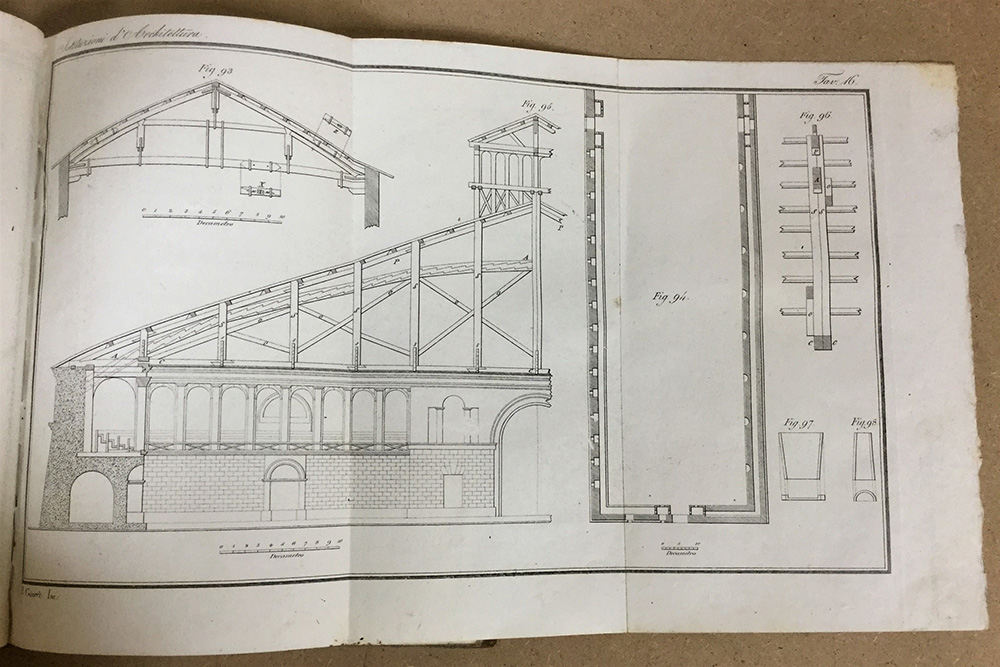 CAVALIERI SAN-BERTOLO, Nicola. Istituzioni di architettura statica e idraulica. Firenze: V. Batelli e Figli - Vittorio Bellini, 1832-33. 3 volumi in 8vo, di cui il terzo di sole tavole incise (lievi fioriture). Legatura in mezza pelle con piatti marmorizzati (lievi difetti).