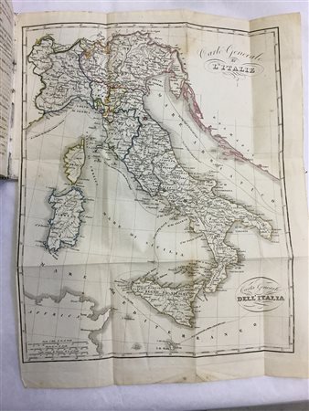 Nuovissima guida dei viaggiatori in Italia. Milano: F. Artaria e figlio, 1839. Vol. in 8vo, con 19 tavole di carte geografiche fuori testo (fioriture, bruniture). Legatura moderna in mezza tela con piatti lignei, tagli rossi.