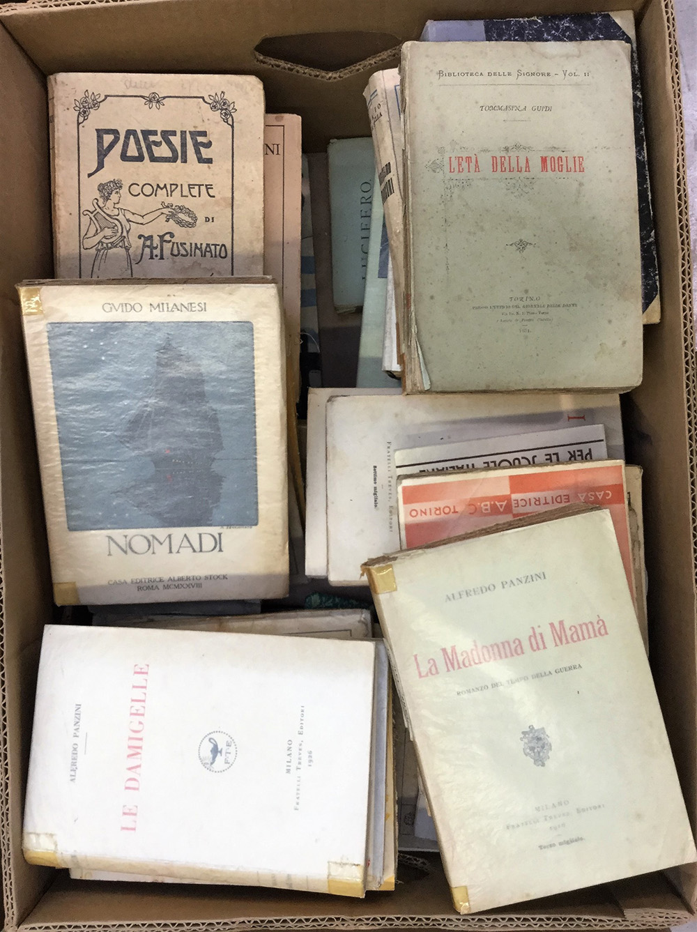 Lotto composto da numerosi romanzi e volumi inerenti la storia, la critica, la narrativa per ragazzi, la letteratura fra cui la II edizione in brossura editoriale dei "Nomadi" di Guido Milanesi (Roma: Casa Editrice Alberto Stock) (lievi difetti). In quattro cartoni.