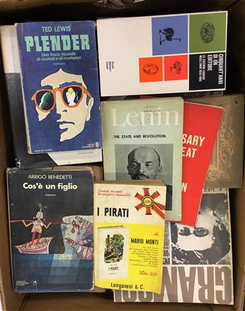 Lotto composto da romanzi, saggistica e storia (fra cui un’edizione antica del Codice Civile di Napoleone in lingua francese). In cinque cartoni.
