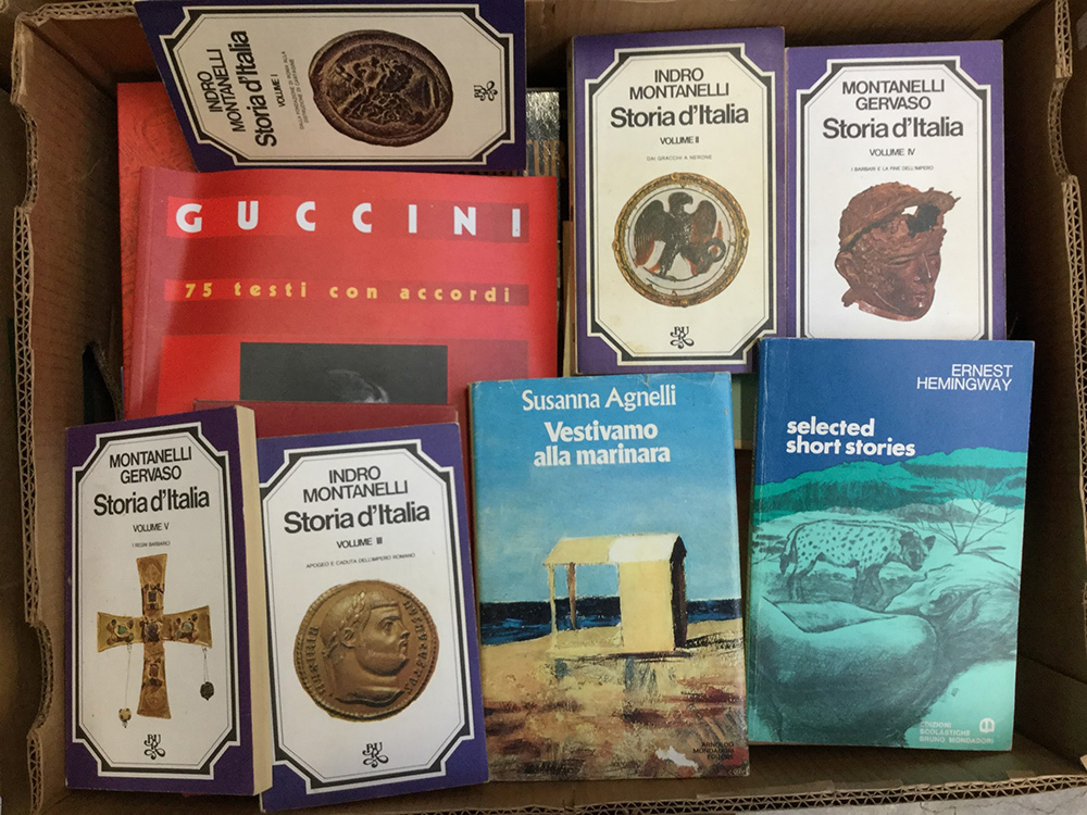 Lotto composto da pubblicazioni di vario argomento, fra cui cataloghi d'arte e di mostre, columi di storia, riviste di varia epoca e romanzi (difetti). In quattro cartoni.