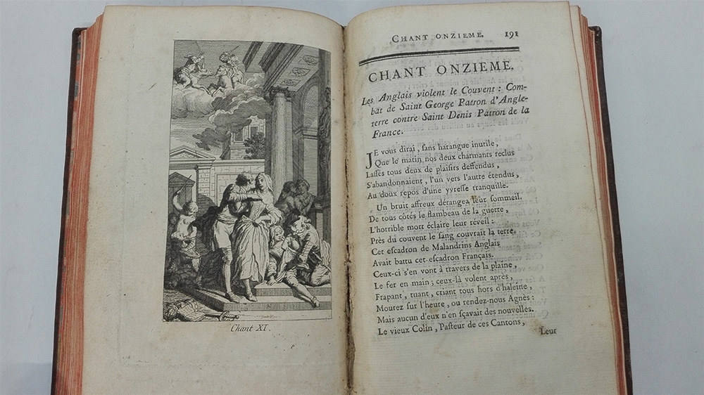 La Pucelle d'Orléans. Poème divisé en vingt chants. [Ginevra: Cramer], 1762. Volume in 8vo, con tavole incise fuori testo. Legatura in piena pelle di vitello, taglio di colore rosso (lievi difetti).