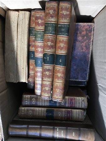 Lotto composto da diversi romanzi e libri antichi di diverso soggetto ed epoca. In cartone.
