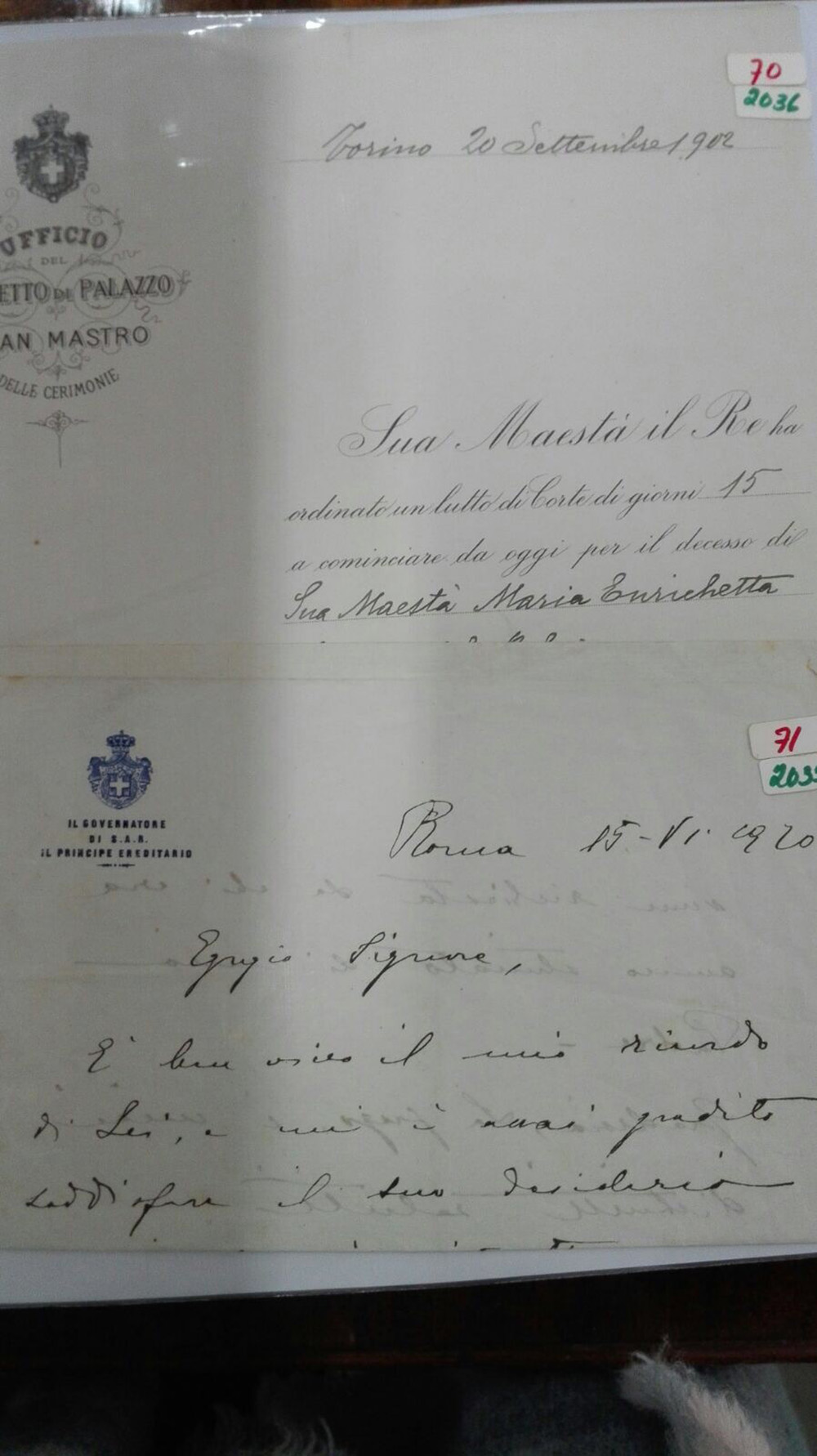 Lotto composto da documenti a stampa e manoscritti inerenti la storia d'Italia e la Casa Reale dei Savoia e la nobiltà italiana del XX secolo. In raccoglitore.