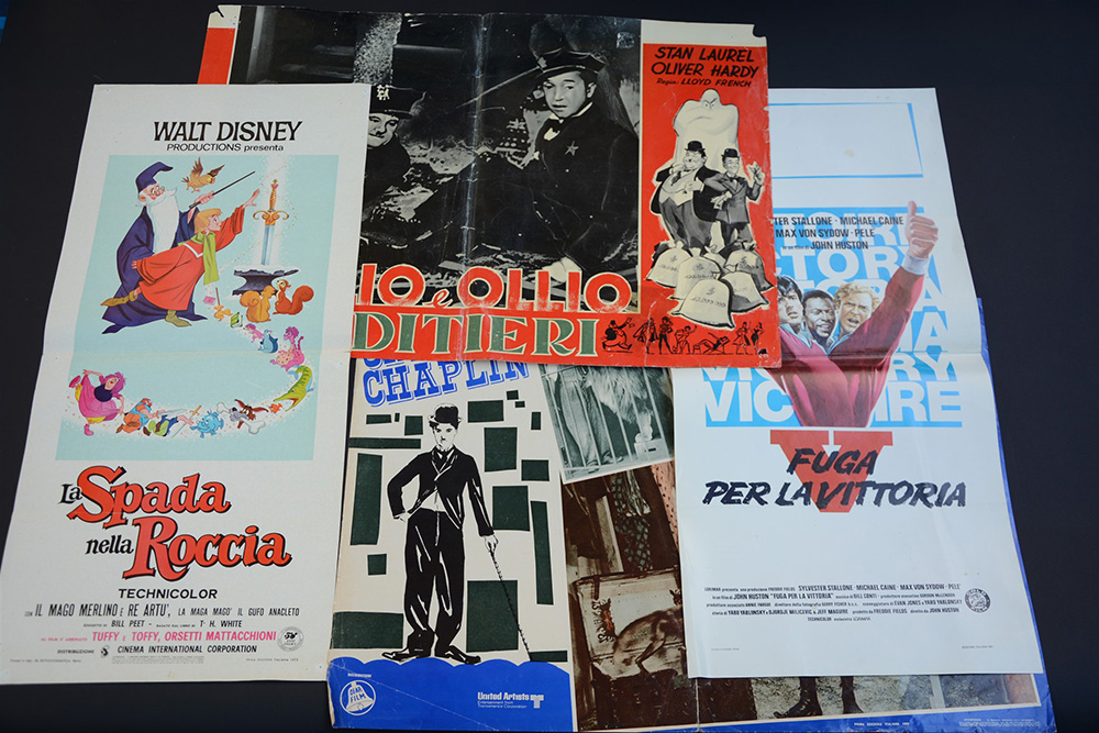 Lotto composto da numerosi manifesti originali di Alberto Sordi, Pasolini, Walt Disney e Stanlio&Olio (difetti).