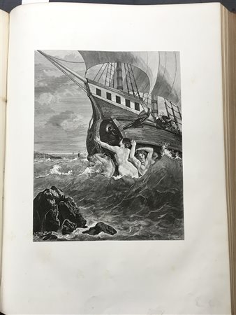 DE CAMOES, Luiz. Os Lusiadas. Poema Epico em dez Cantos. Lisbona: Imprensa Nacional, 1878. Vol. in folio, con ritratto dell’autore in antiporta e tavole fuori testo che descrivono i momenti salienti dell’epopea portoghese (fioriture). Legatura editoriale in tela rossa, fregi a secco e in oro al dorso e ai piatti, taglio dorato (lievi difetti)