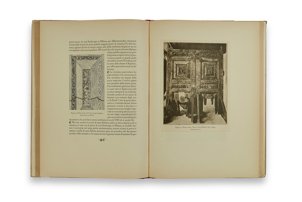 MONNERET DE VILLARD, U.; PATRICOLO, A. La Chiesa Di Santa Barbara al Vecchio Cairo. Firenze: Istituto Edizioni Artistiche Fratelli Alinari, 1922 (prima edizione). Volume in folio, con 54 illustrazioni (su 59). Esemplare 161/200. Legatura editoriale cartonata (lievi difetti).