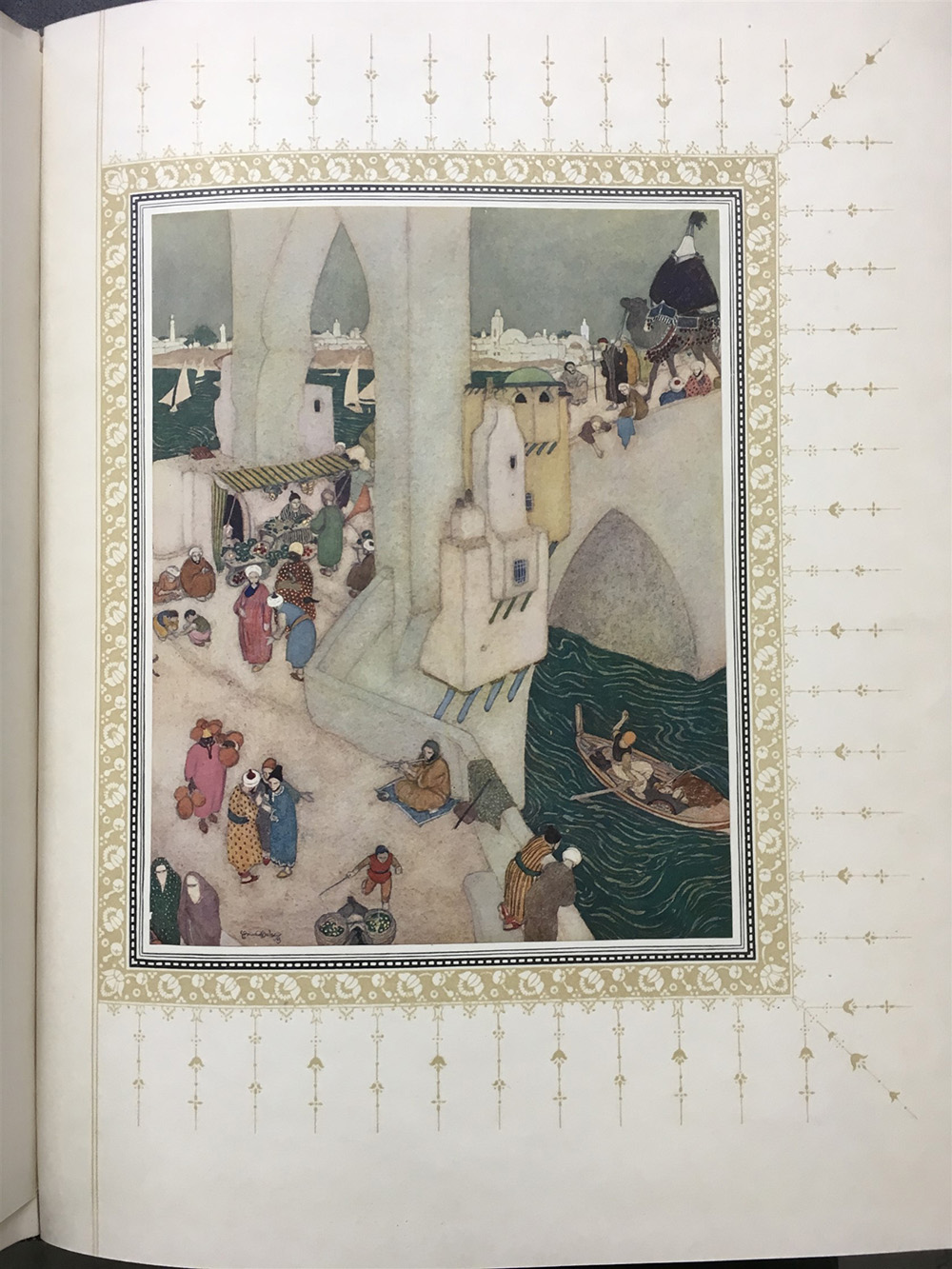 [DULAC, Edmund]. Sindbad the Sailor and Other Stories from the Arabian Nights. Londra: Hodder and Stoughton, 1914. Vol. in 4to, con numerose illustrazioni a colori. Legatura editoriale in piena tela decorata con impressioni in oro e con motivi floreali.