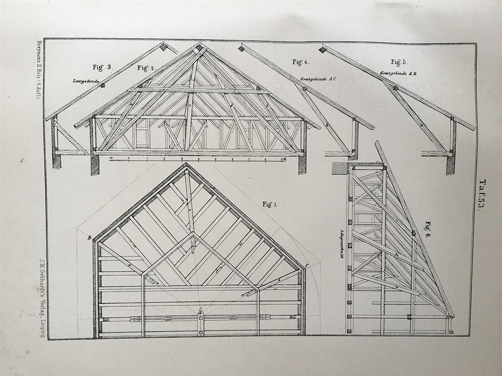 WARTH, Otto. Allgemeine Baukonstruktionslehre mit besonderer Beziehung auf das Hochbauwesen. 2. Band: Die Konstruktionen in Holz. Lipsia: Gebhardt Verlag, 1900. Vol. in folio, con numerose tavole fuori testo. Legatura coeva in mezza pelle e decorati con impressioni a motivi floreali. Si aggiunge TEMPLE, Richard. Palestine illustrated. Londra: W.H. Allen, 1888.