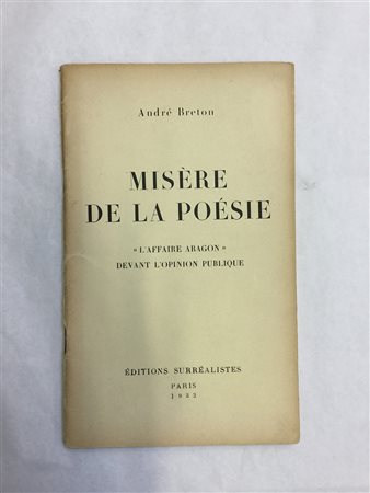 BRETON, André. Misère de la Poesie "L'affaire Aragon" devant l'opinion publique. Parigi: Editions Surrealistes, 1932 (I edizione). Vol. in 8vo. Brossura editoriale (lievi difetti).