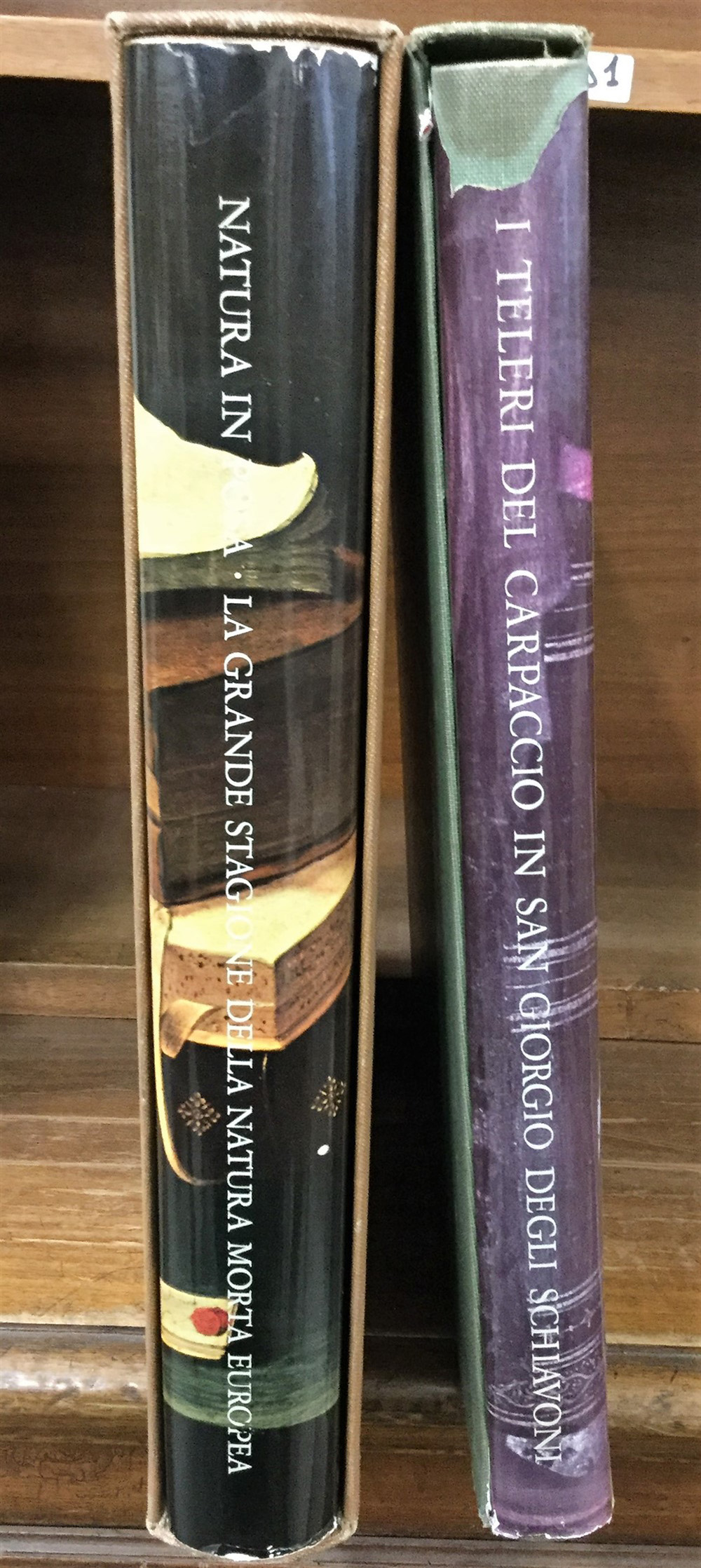 Lotto composto da: - Pallucchini "I teleri del Carpaccio in San Giorgio degli Schiavoni", ed.Rizzoli - AA. VV. "Natura in osa: La grande stagione della natura morta europea", ed. Rizzoli Due volumi riccamente illustrati, contenuti in custodia (difetti)