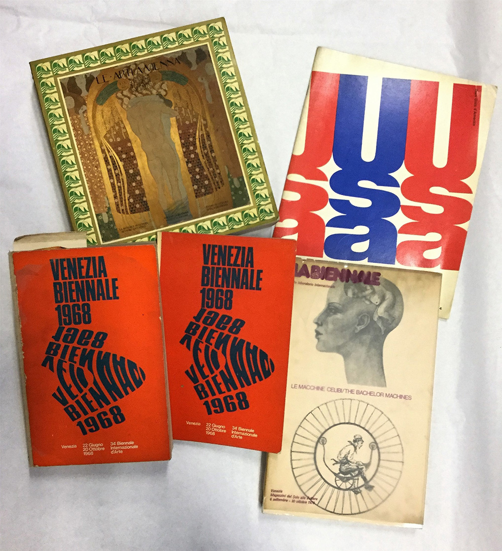 Lotto composto da quattro cataloghi relativi a varie edizioni della Biennale dell'Arte di Venezia (difetti)