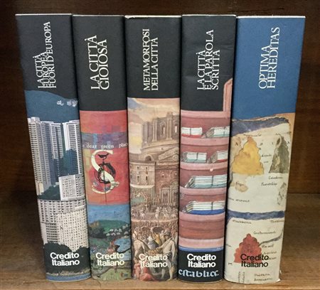 Lotto composto da: - AA.VV. Civitas Europaea. opera parziale di quattro volumi su sette: Metamorfosi della citta',1995, La citta' gioiosa,1996. La citta' e la parola scritta,1997. La citta' europea fuori d'Europa,ed. Scheiwiller per Credito Italiano; ed - AA.VV. Optima Hereditas.Sapienza Giuridica Romana e Conoscenza dell'Ecumene, ed. Scheiwiller per Credito Italiano