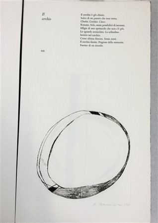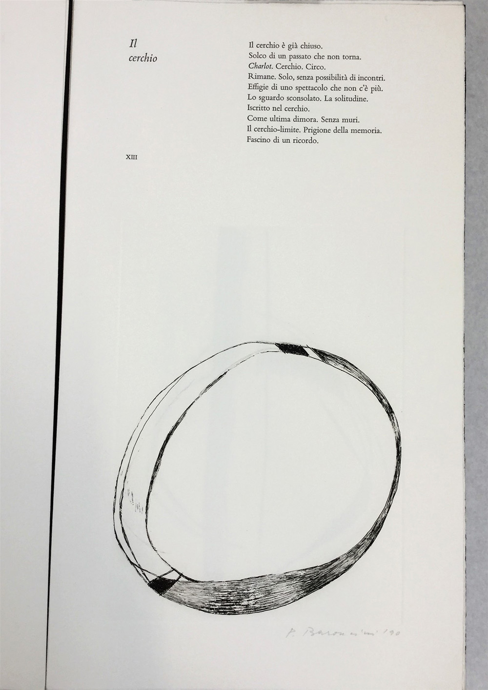 BARONCINI, Paola - BALLO, Francesco. Traccia comica. Milano: Grafica Uno - Giorgio Upiglio, 1991. Esemplare 49/75, con 8 incisioni firmate e datate dall'artista. Copia firmata dagli autori. 4vo. Legatura editoriale cartonata (compromessa).