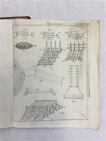 Antonio Alberti Bolognesi. Istruzioni pratiche per l'ingniere civile. Venezia: Pietro Savioni, 1774. Vol. in 4to, con numerose tavole incise in rame. Legatura in mezza pelle coeva, taglio a spruzzi rosso.