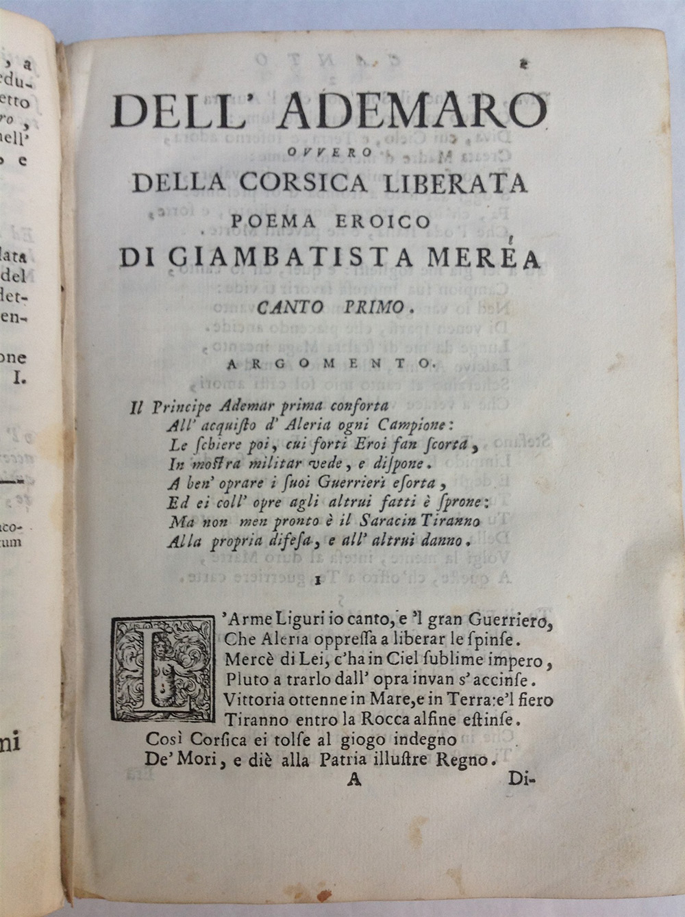 MEREA, Gianbattista. Ademaro ovvero corsica liberata. Lucca: Salvatore e...