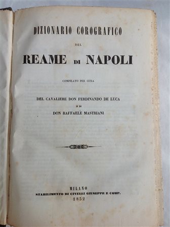 DE LUCA, Ferdinando. Dizionario corografico del Reame di Napoli. Milano:...